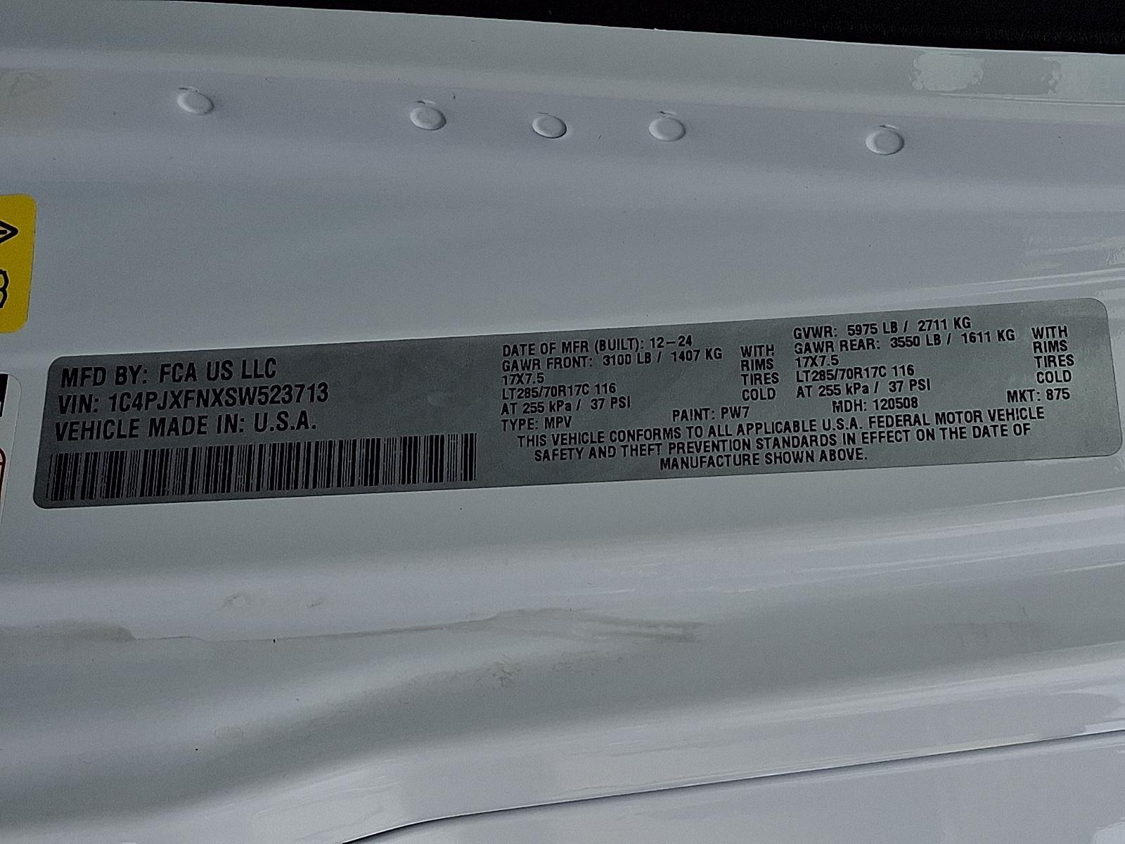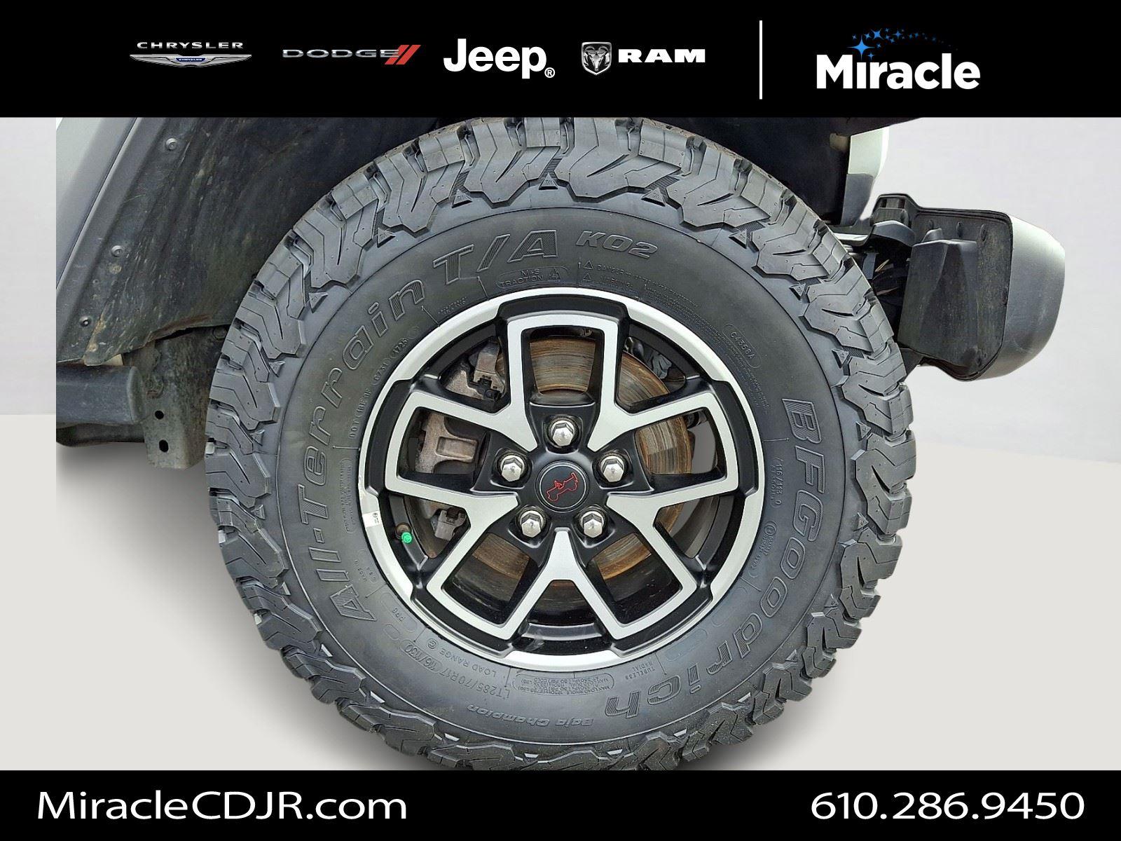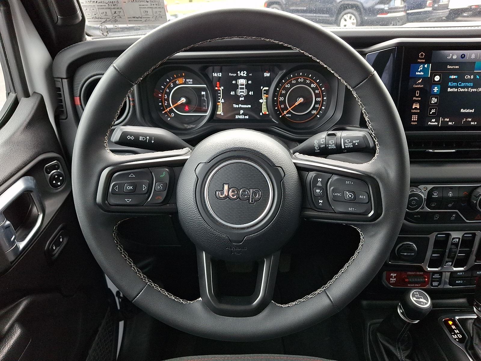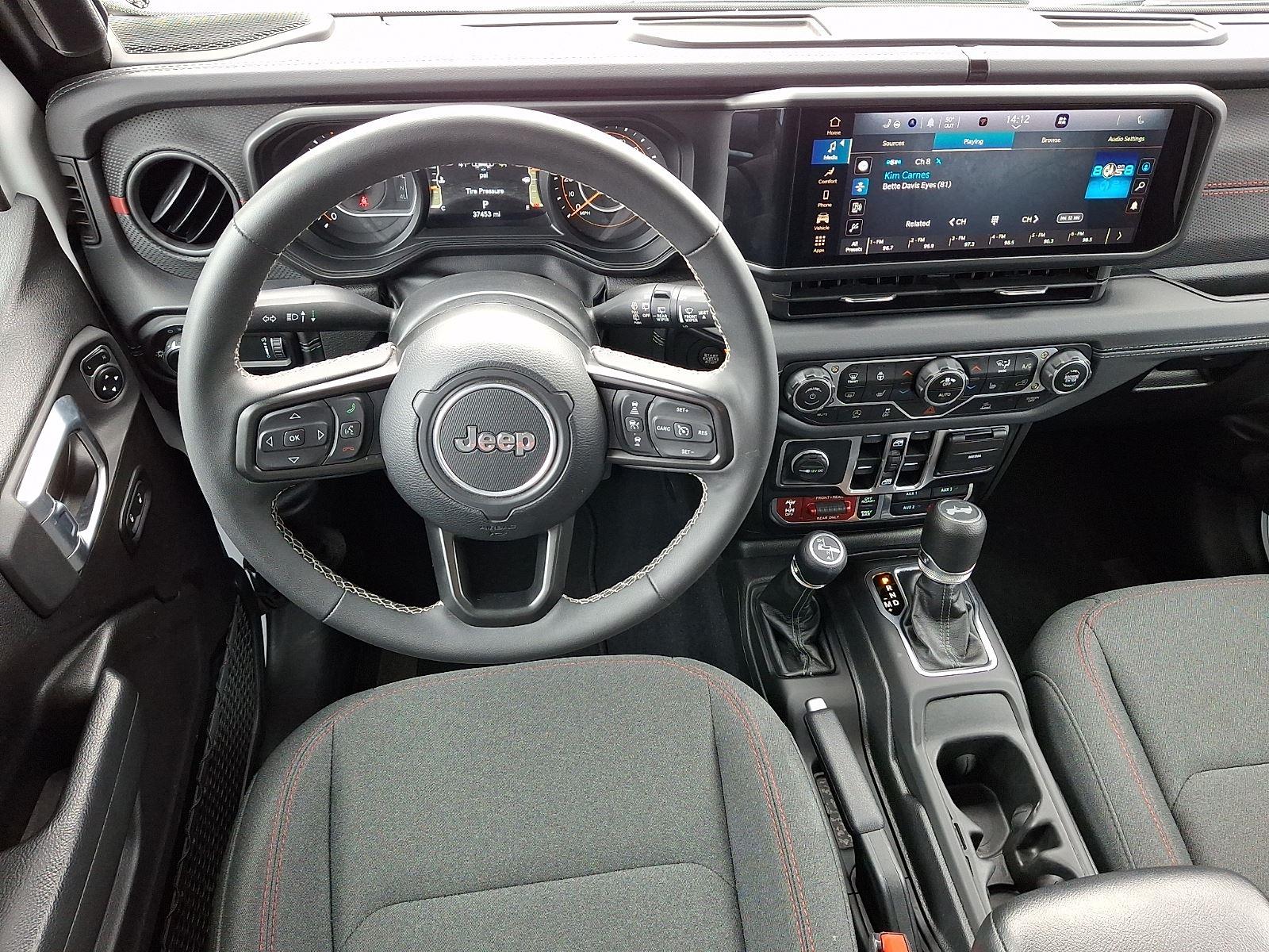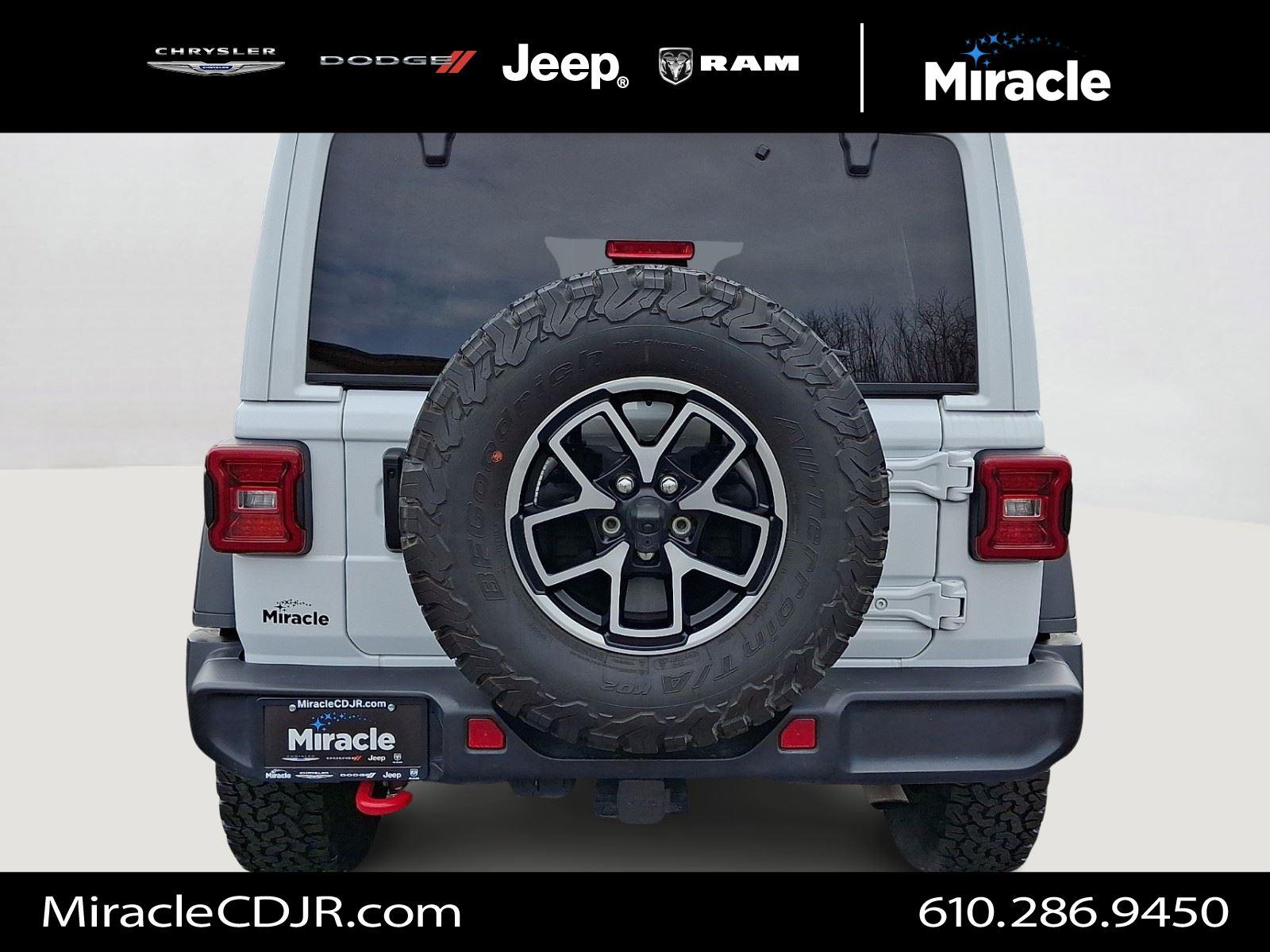 Meet the 2025 Jeep Wrangler Rubicon in striking White with a Black interior — built to dominate trails and city streets alike. Rugged Rubicon capability comes standard: 4WD, locking differentials, LT285/70R17 tires on alloy wheels, a full‑size spare and 10.8" ground clearance for confidence off-road. Modern safety and control features include ABS, traction control, vehicle stability, locking differential and a full complement of airbags, while comfort and convenience are covered with heated power front seats, leather steering wheel, keyless entry with remote ignition, navigation and dual-zone climate controls. Backed by a 36/36K basic warranty and 60/60K powertrain coverage, this Wrangler Rubicon is ready for your next adventure — schedule a test drive today.