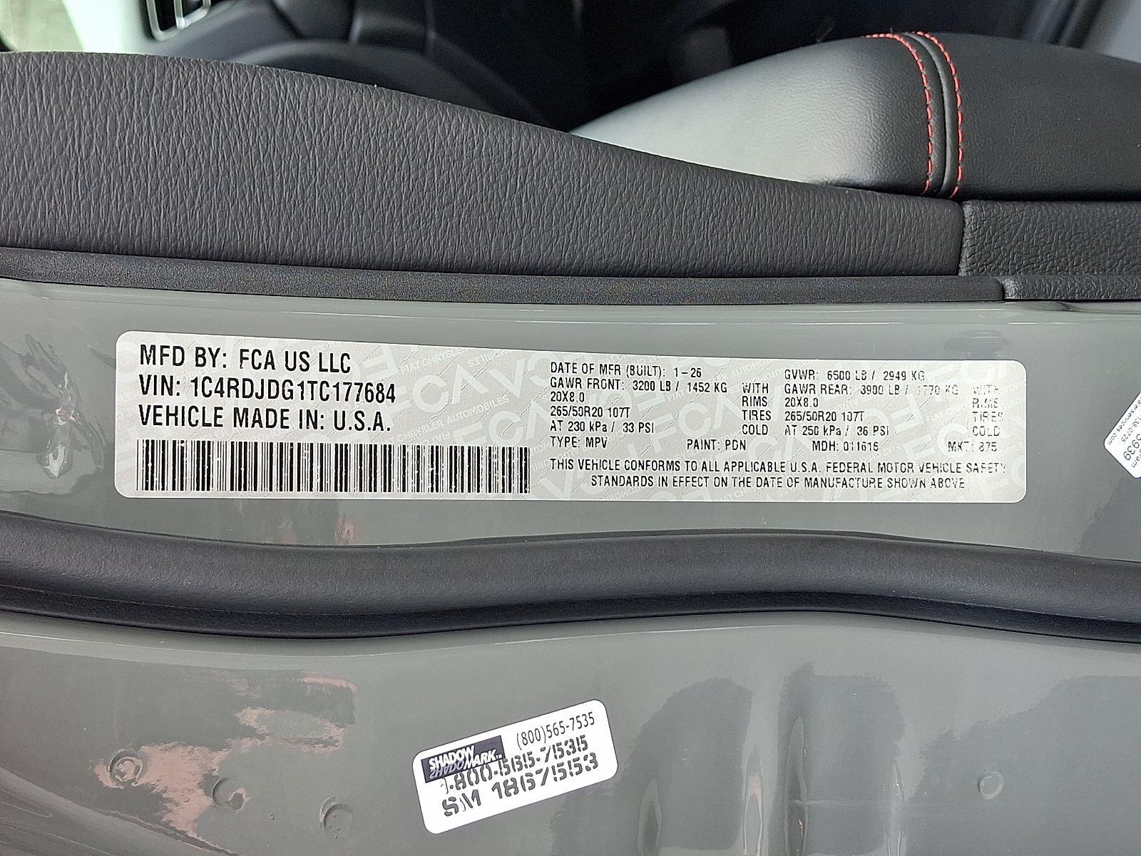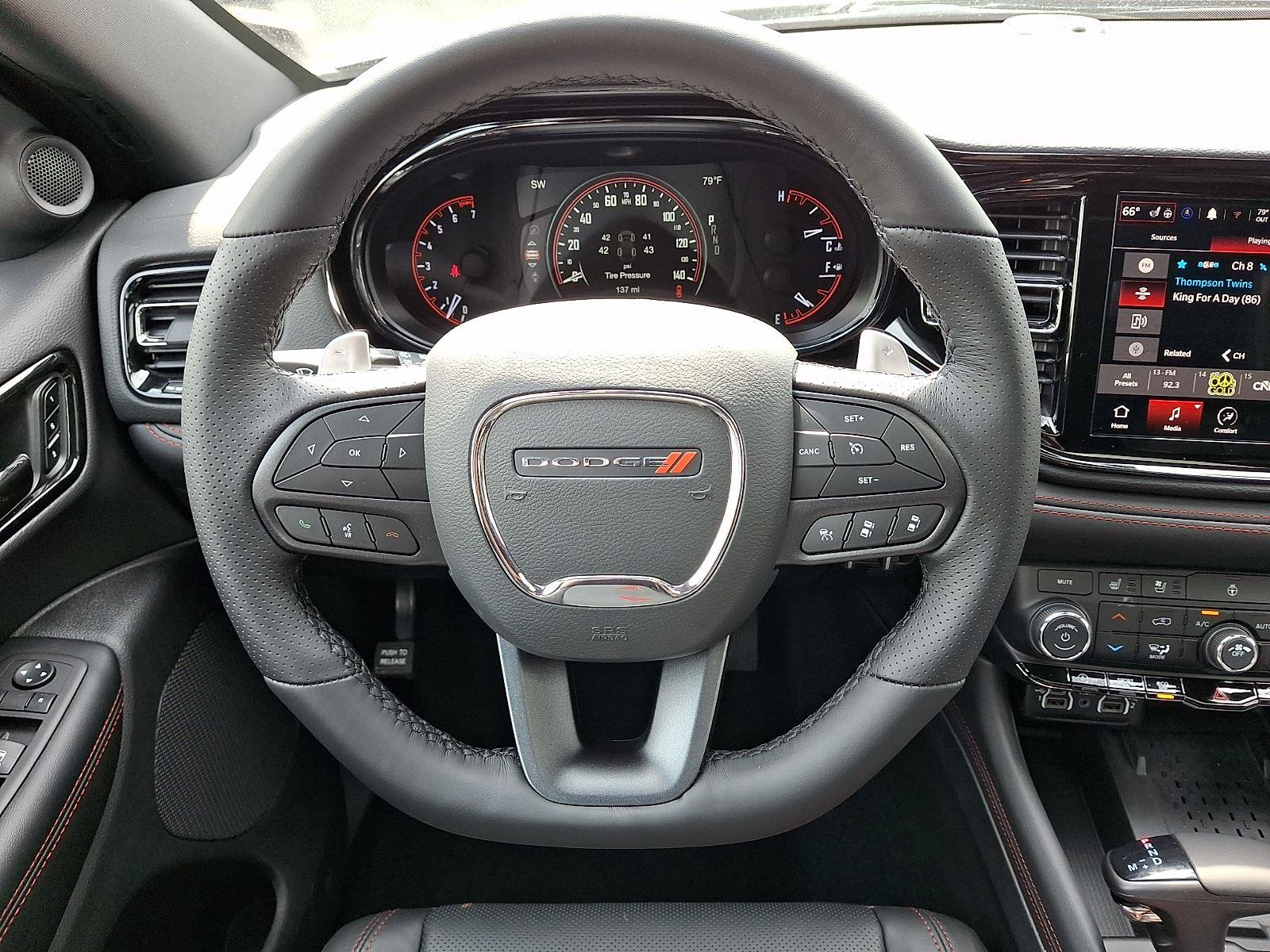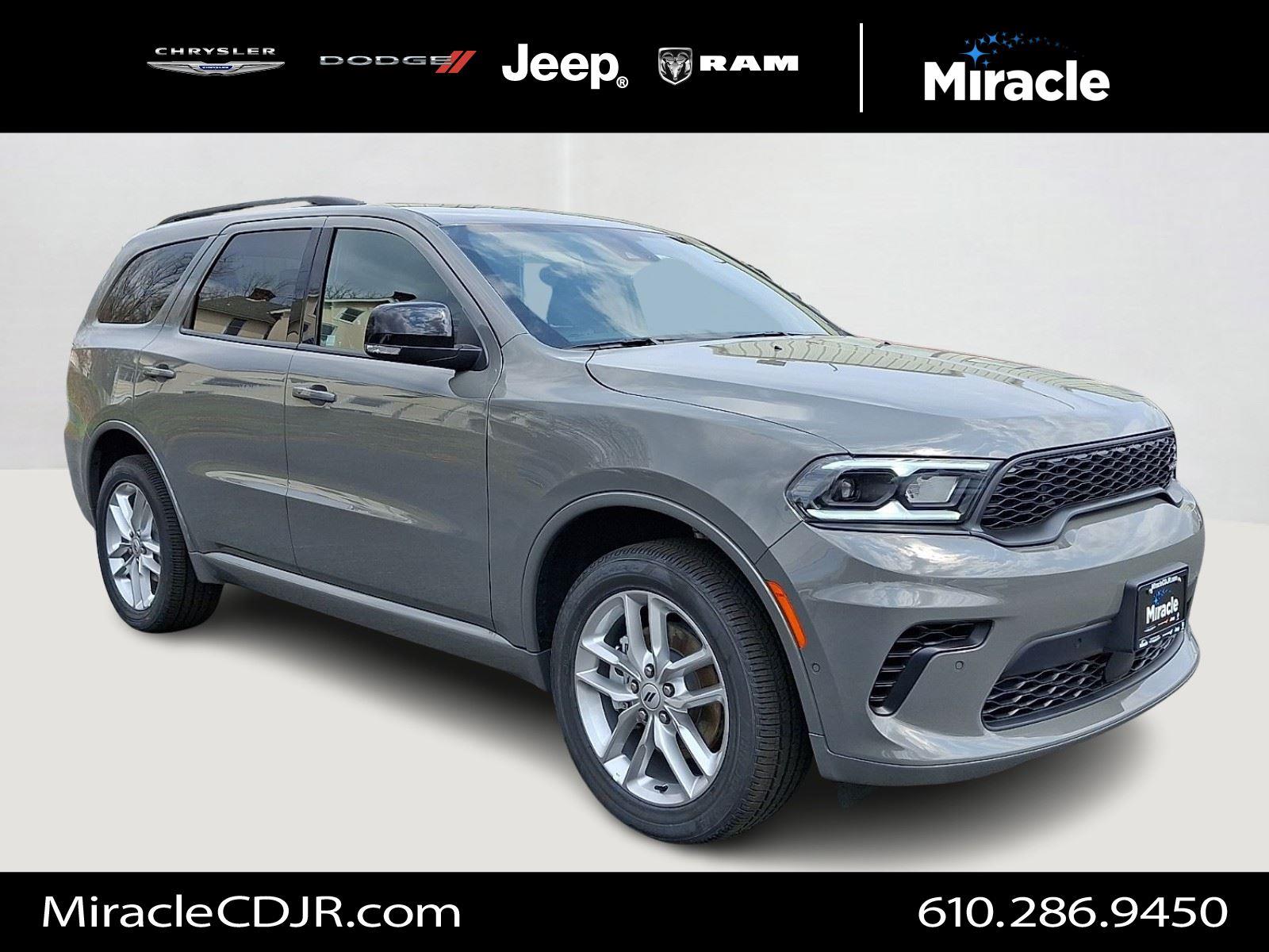 Meet the 2026 Dodge Durango GT Plus — stunning in Gray with a Black leather interior and seating for seven. This AWD SUV pairs confident handling (4-wheel ABS, traction & stability control, run-flat 265/50R20 tires) with a comprehensive safety suite including multiple airbags, child door locks and vehicle anti-theft protection. Enjoy daily comfort and convenience with keyless entry, dual-zone climate control, heated leather steering wheel and heated power front seats with lumbar support, plus a premium audio setup with subwoofer. Practical luxury is backed by strong coverage: 36/36k basic, 60/60k powertrain and 60-month rust warranties. Ready for a test drive? Come see it today.