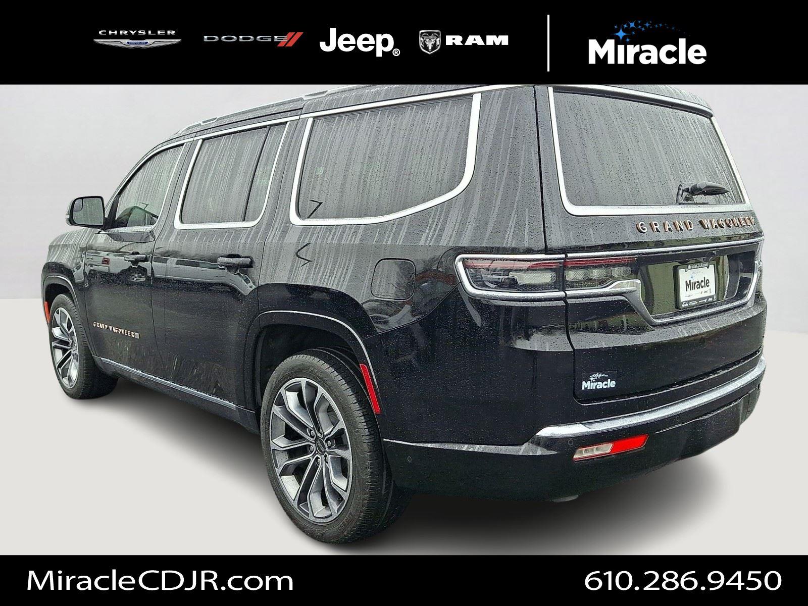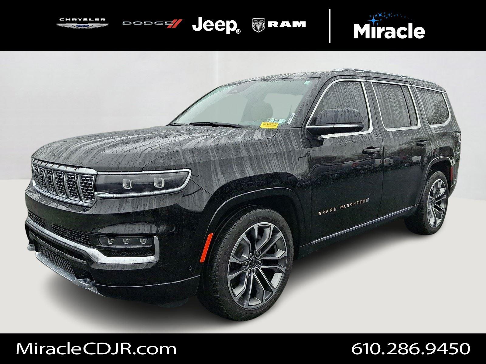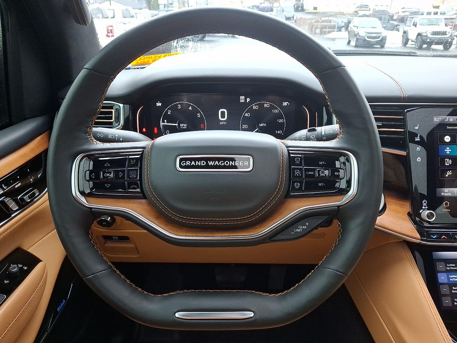 2024 Jeep Grand Wagoneer Series III — Black on Black luxury and capability. Enjoy confident all-weather performance with full-time 4WD, locking and limited‑slip differentials plus advanced ABS, traction and stability control. Slip into heated black leather front seats and a heated leather steering wheel, take advantage of keyless entry and remote start with climate control, and experience premium audio with subwoofer and a full suite of airbags and electronic parking aids. Seating for seven, 22" wheels with a full‑size spare, and factory warranties (3/36K basic, 5/60K powertrain, 5‑year rust) make this an exceptional choice — schedule your test drive today.