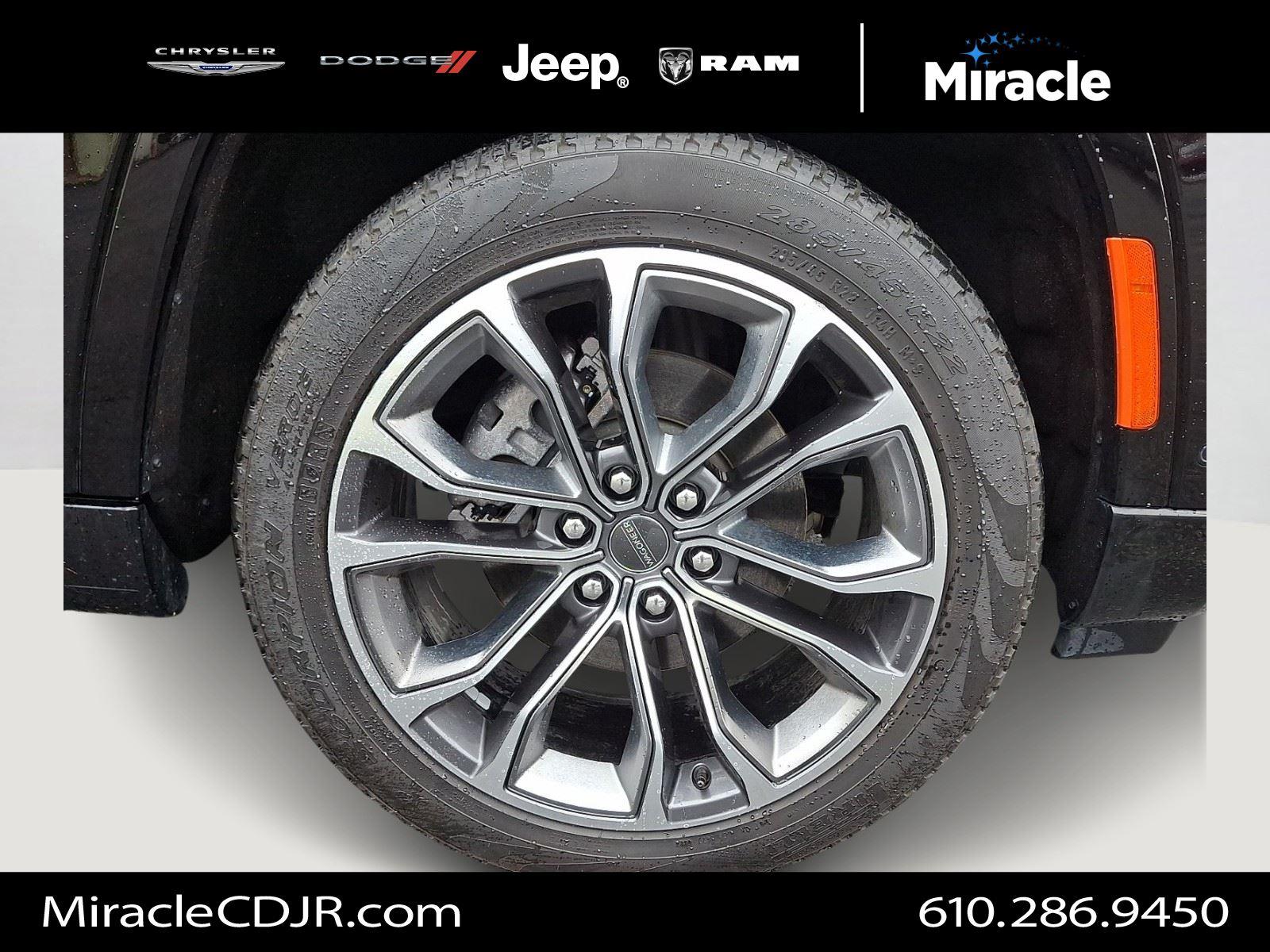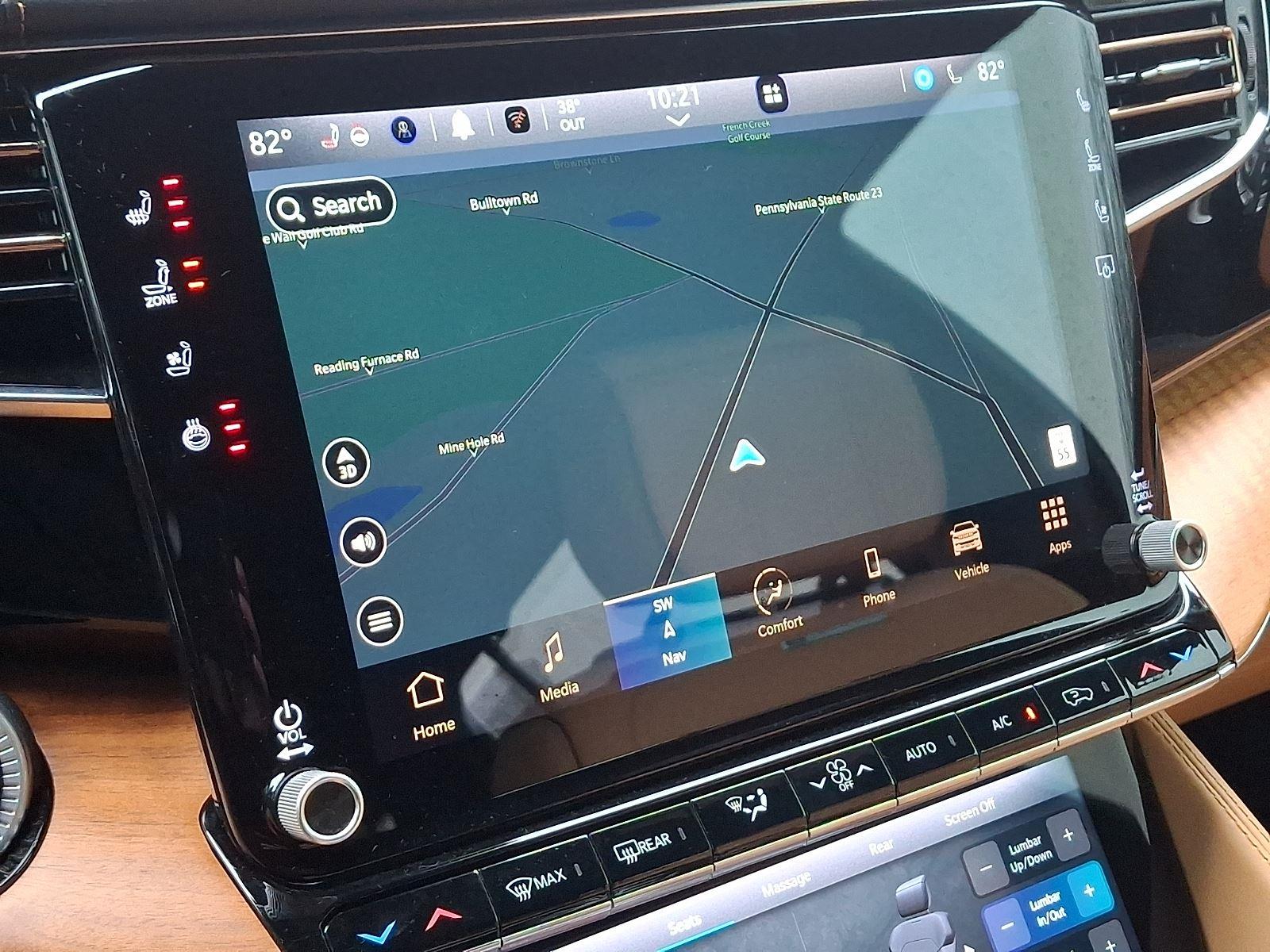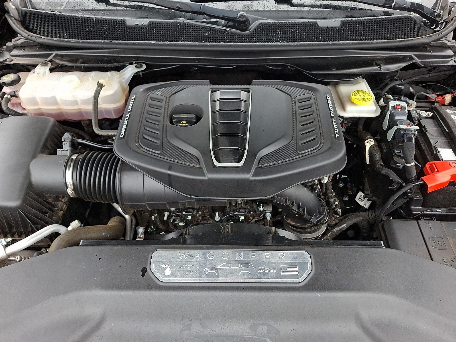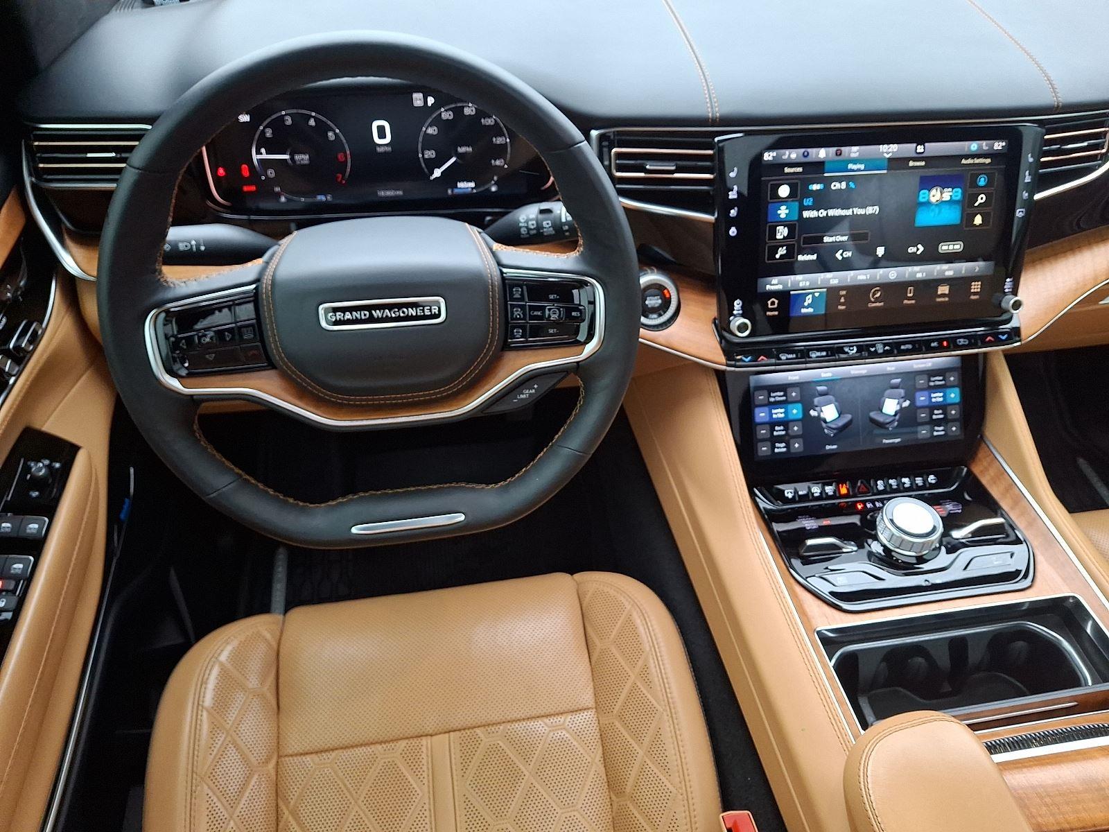 2024 Jeep Grand Wagoneer Series III — Black on Black luxury and capability. Enjoy confident all-weather performance with full-time 4WD, locking and limited‑slip differentials plus advanced ABS, traction and stability control. Slip into heated black leather front seats and a heated leather steering wheel, take advantage of keyless entry and remote start with climate control, and experience premium audio with subwoofer and a full suite of airbags and electronic parking aids. Seating for seven, 22" wheels with a full‑size spare, and factory warranties (3/36K basic, 5/60K powertrain, 5‑year rust) make this an exceptional choice — schedule your test drive today.