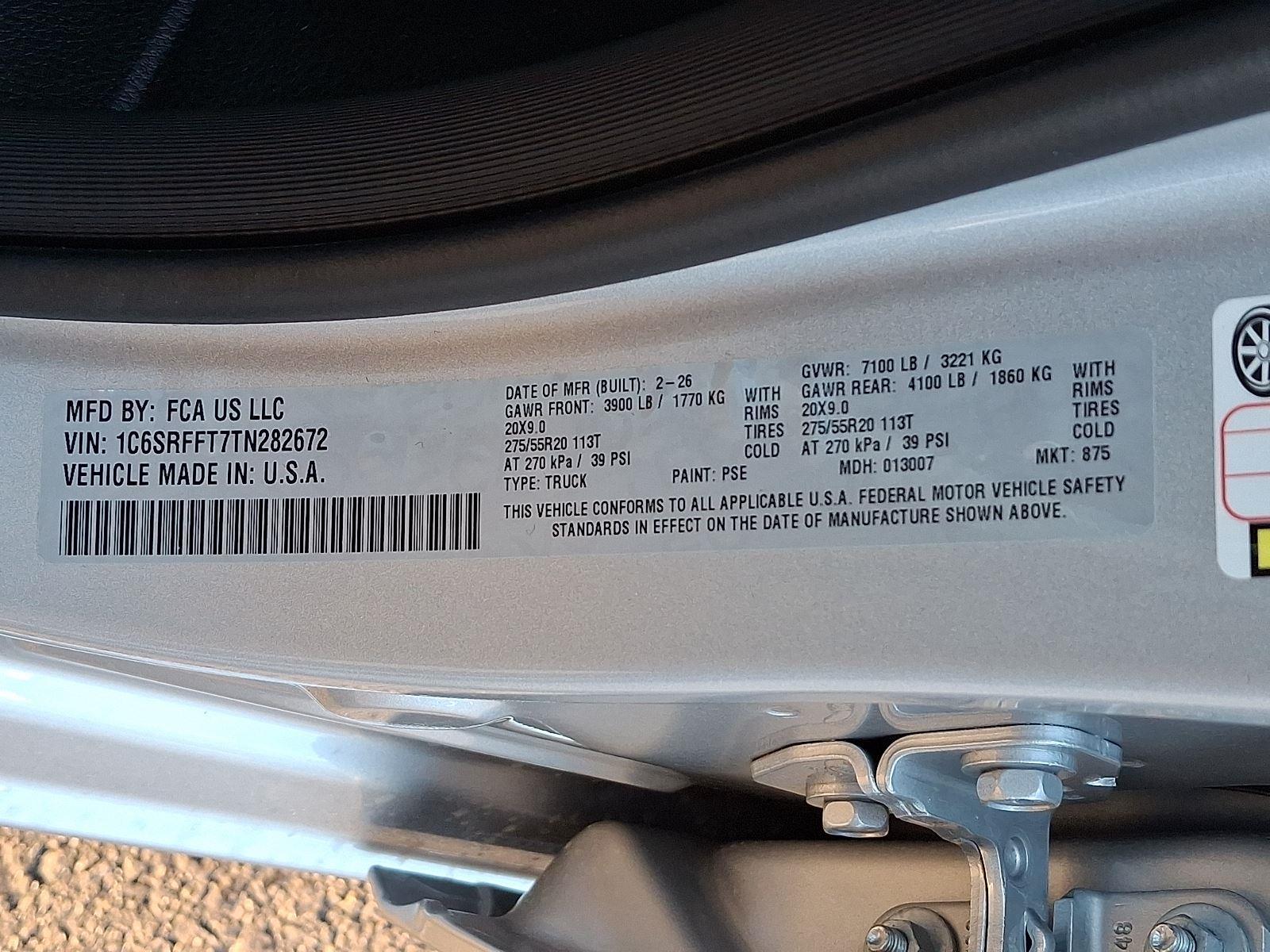 Meet the 2026 RAM 1500 — built to work and engineered to protect. With full-time 4WD, ABS, traction and vehicle stability control, and multiple airbags, this truck pairs serious capability with top-tier safety. Enjoy convenience features like keyless entry, remote ignition with climate control, heated mirrors and automatic headlights, plus durable run-flat LT275/65R18 tires and a rugged coil-front/leaf-rear suspension that’s ready for the jobsite or weekend getaway. Spacious five-passenger seating and generous legroom make every drive comfortable, while built-in anti-theft and child safety locks give you extra peace of mind. Stop by today for a closer look and a test drive — see why the 2026 RAM 1500 is the complete package.