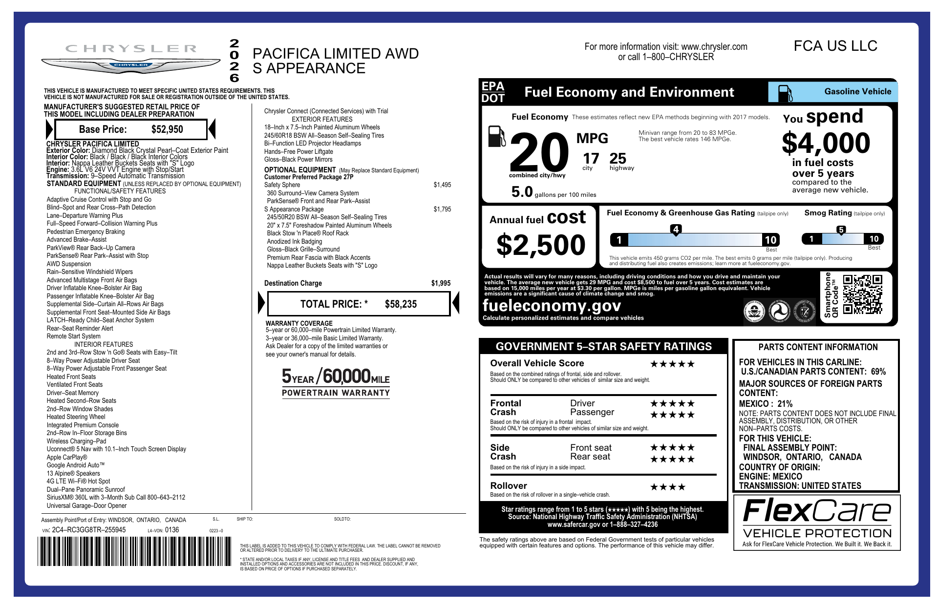 2026 Chrysler Pacifica Limited — Black exterior, Black leather interior. Elegant, family-ready and built with confidence.